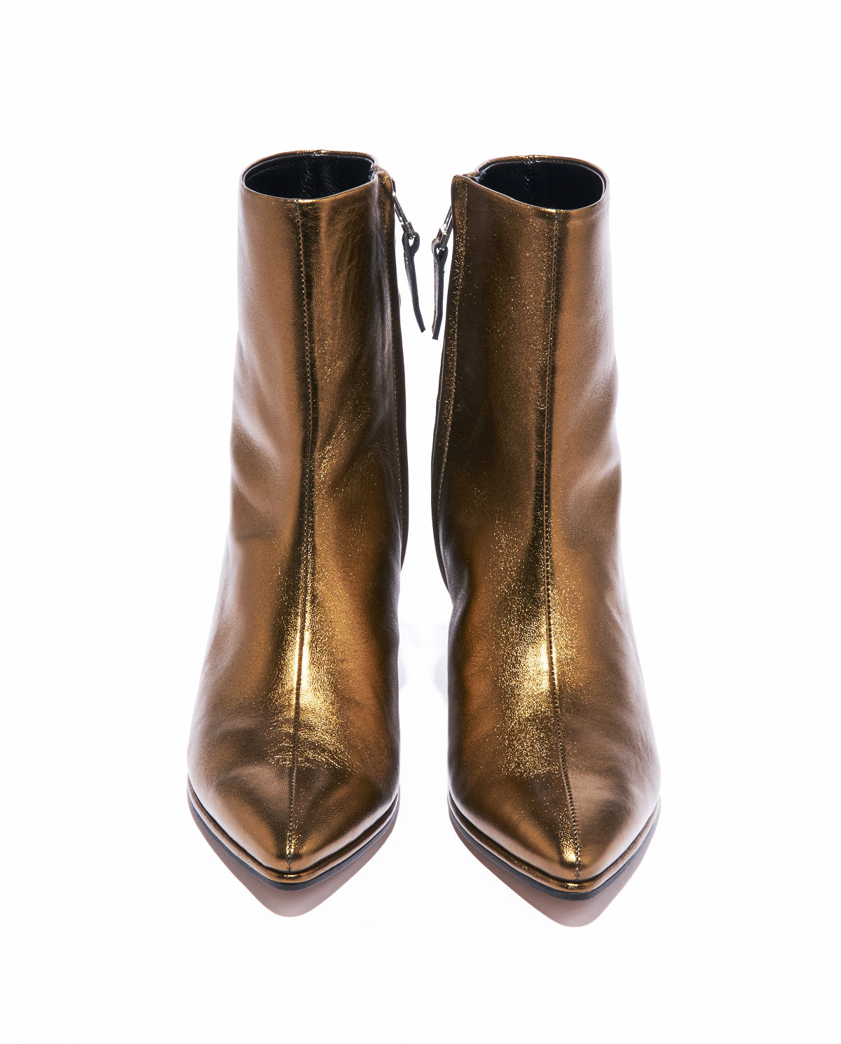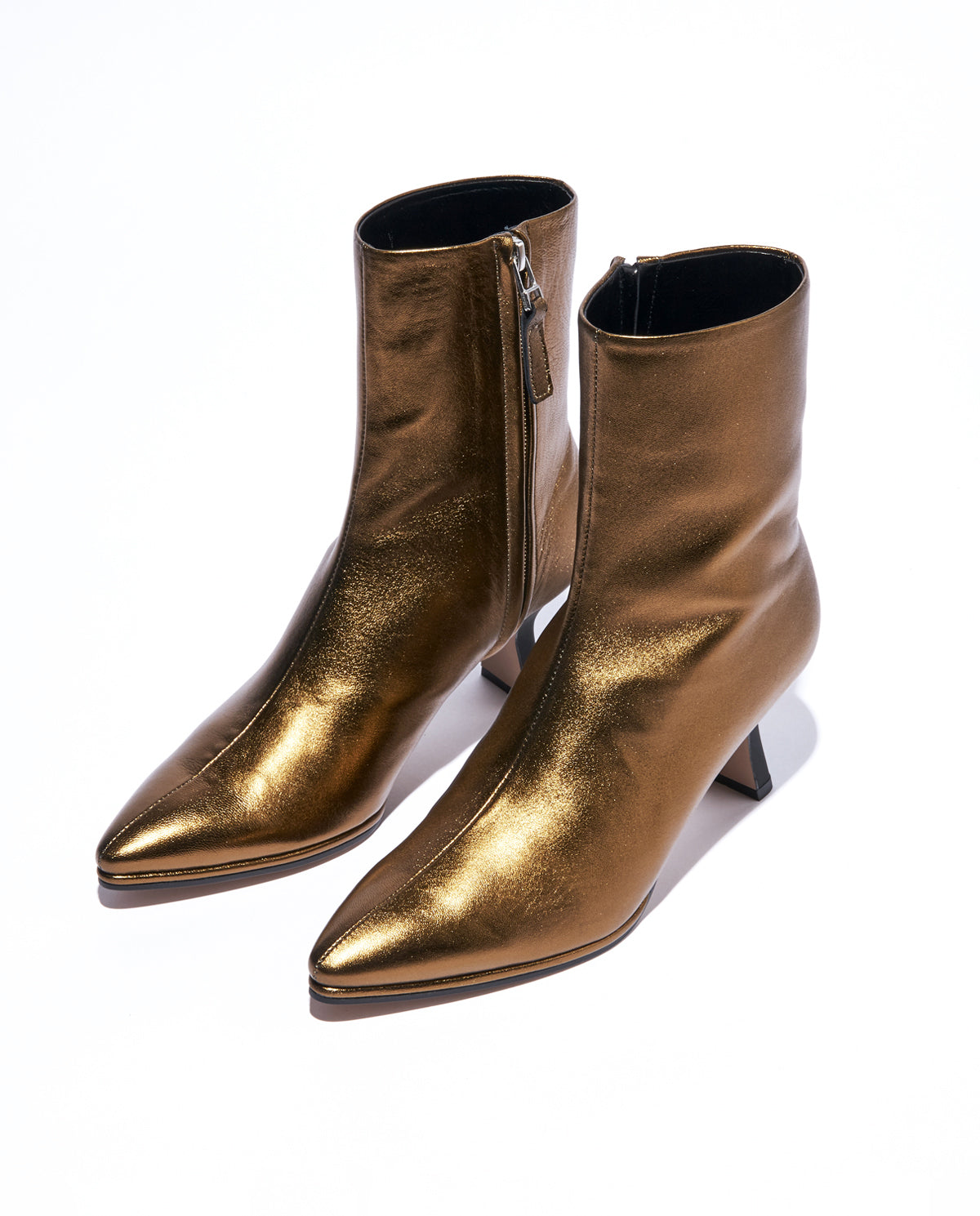 ロングノーズのつま先とストンと真っ直ぐな癖のない筒で、シンプルでありながらもしっかりと主張を感じるデザインです。ミニマルなアッパーとコントラストをつけるよう、少し癖のあるフォルムのヒールを合わせました。