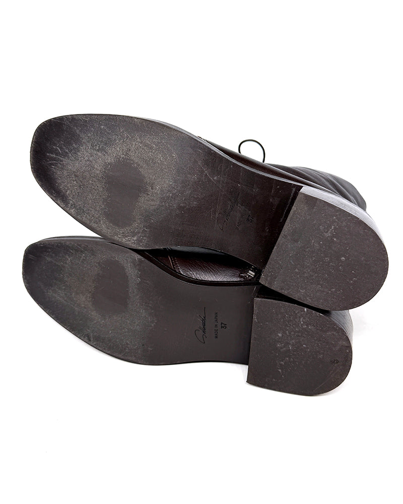 ※ 踵に小さな穴が見られる場合がございますが、靴づくりの過程で足入れにばらつきが出ないように、職人がアッパーを木型に固定する際につくものです。こちらの穴は不良ではございませんので予めご理解くださいませ。